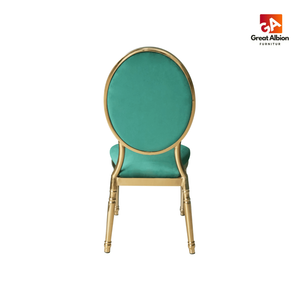 Striking emerald green velvet seat and oval backrest for a premium, photo-ready appearance that adds elegance to any event.